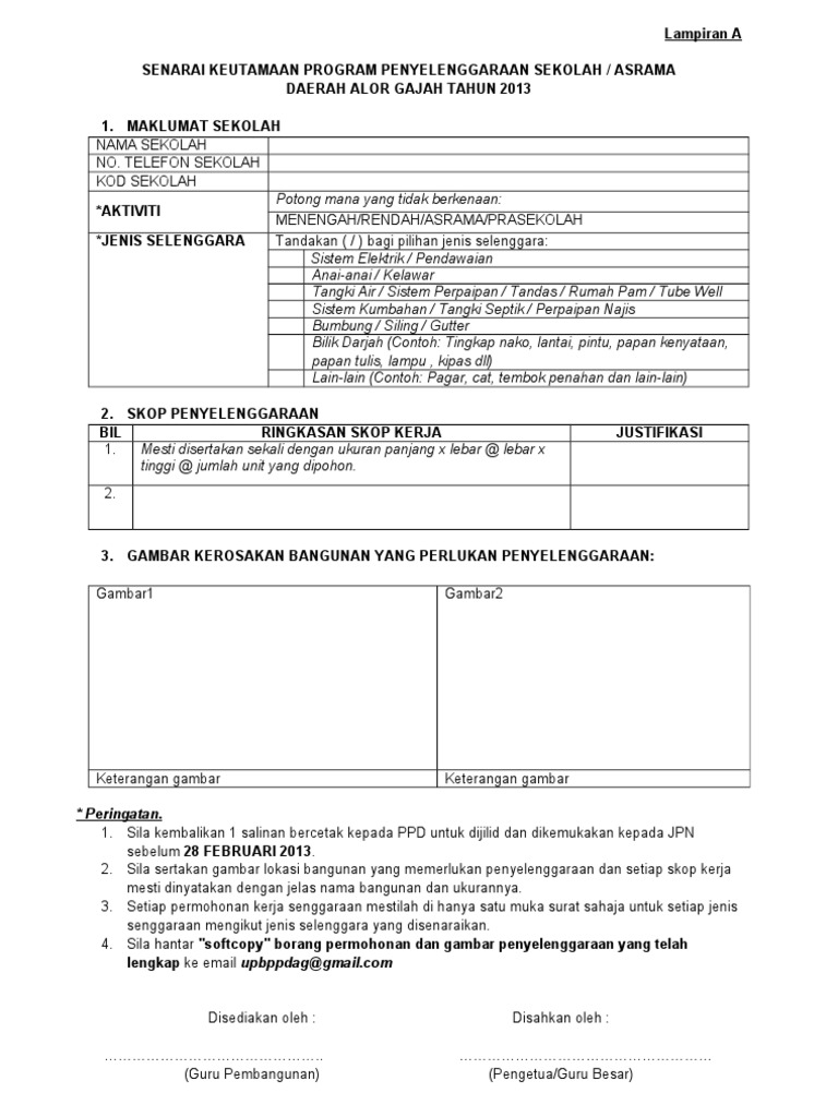 contoh borang penyelenggaraan