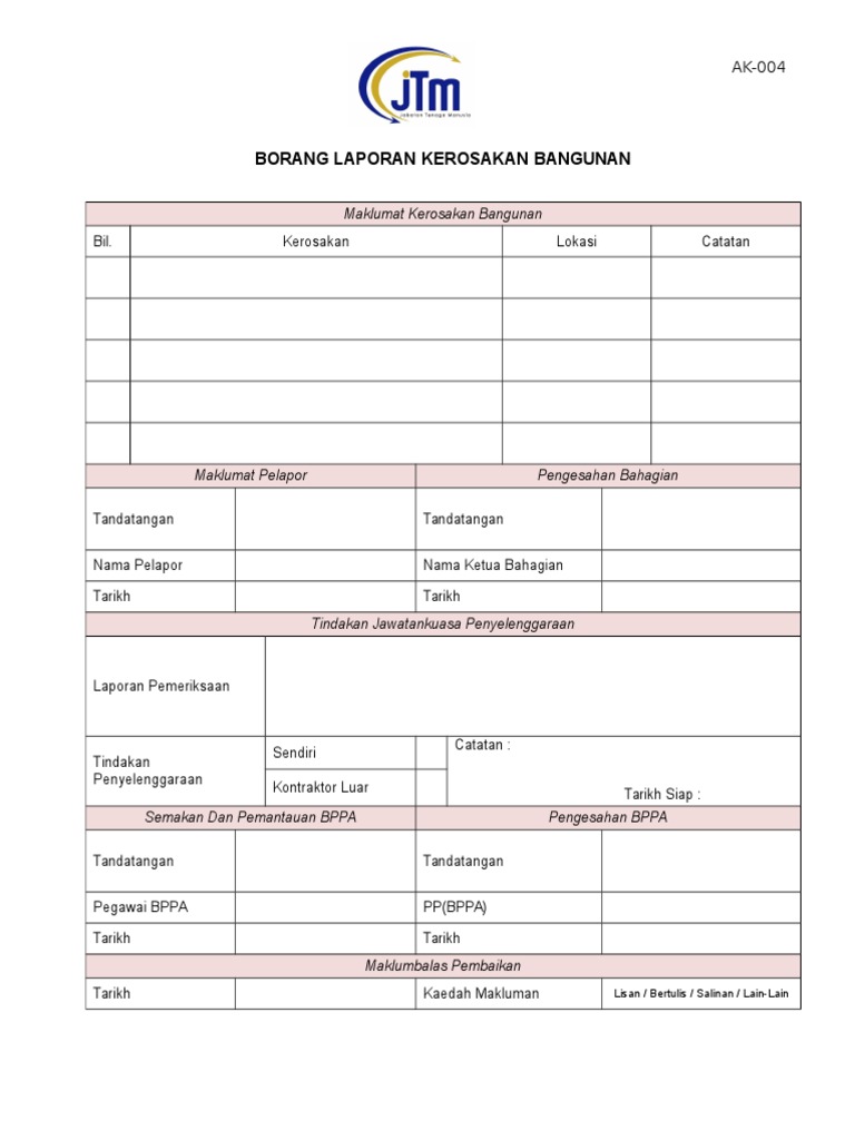 Borang Laporan Kerosakan Bangunan Pdf
